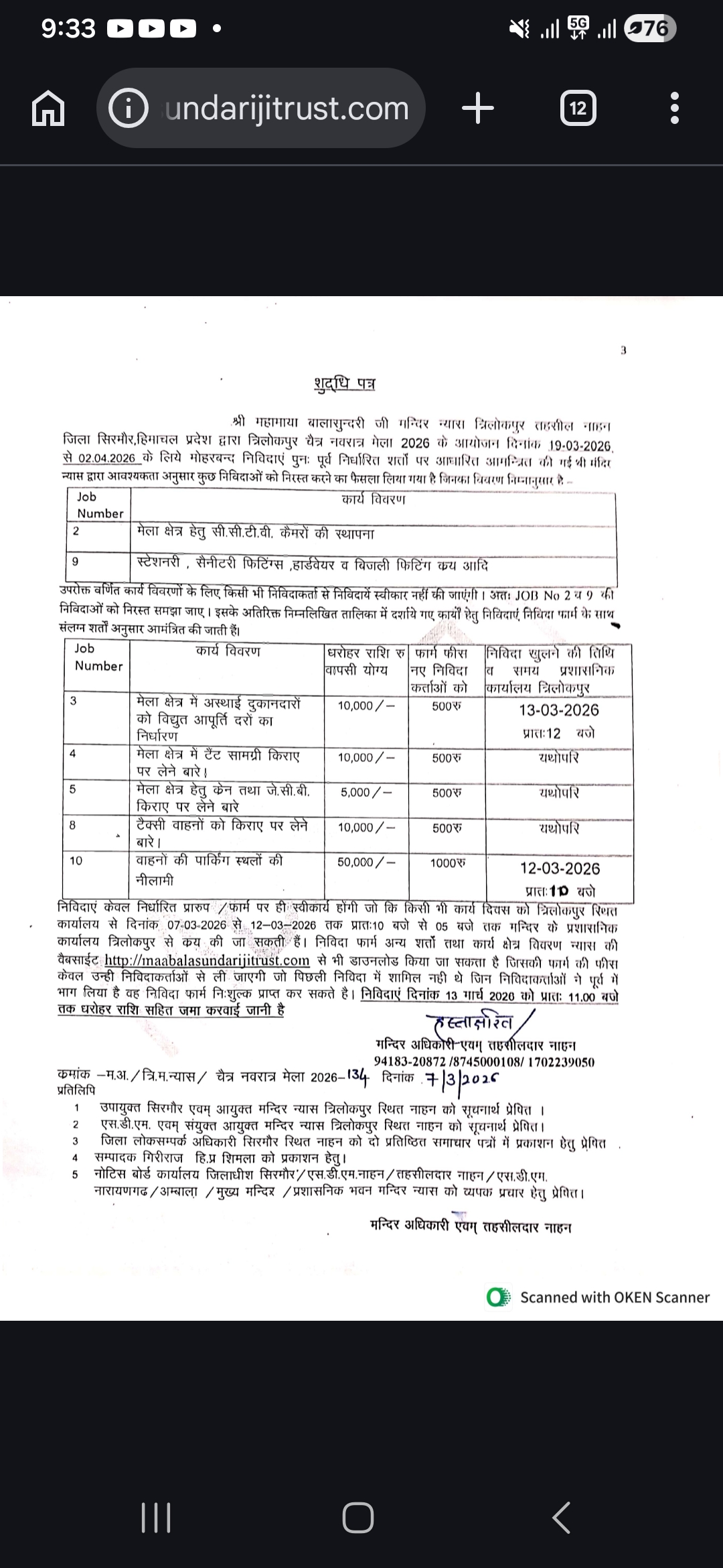 Tender Notice last date 06 March 2026